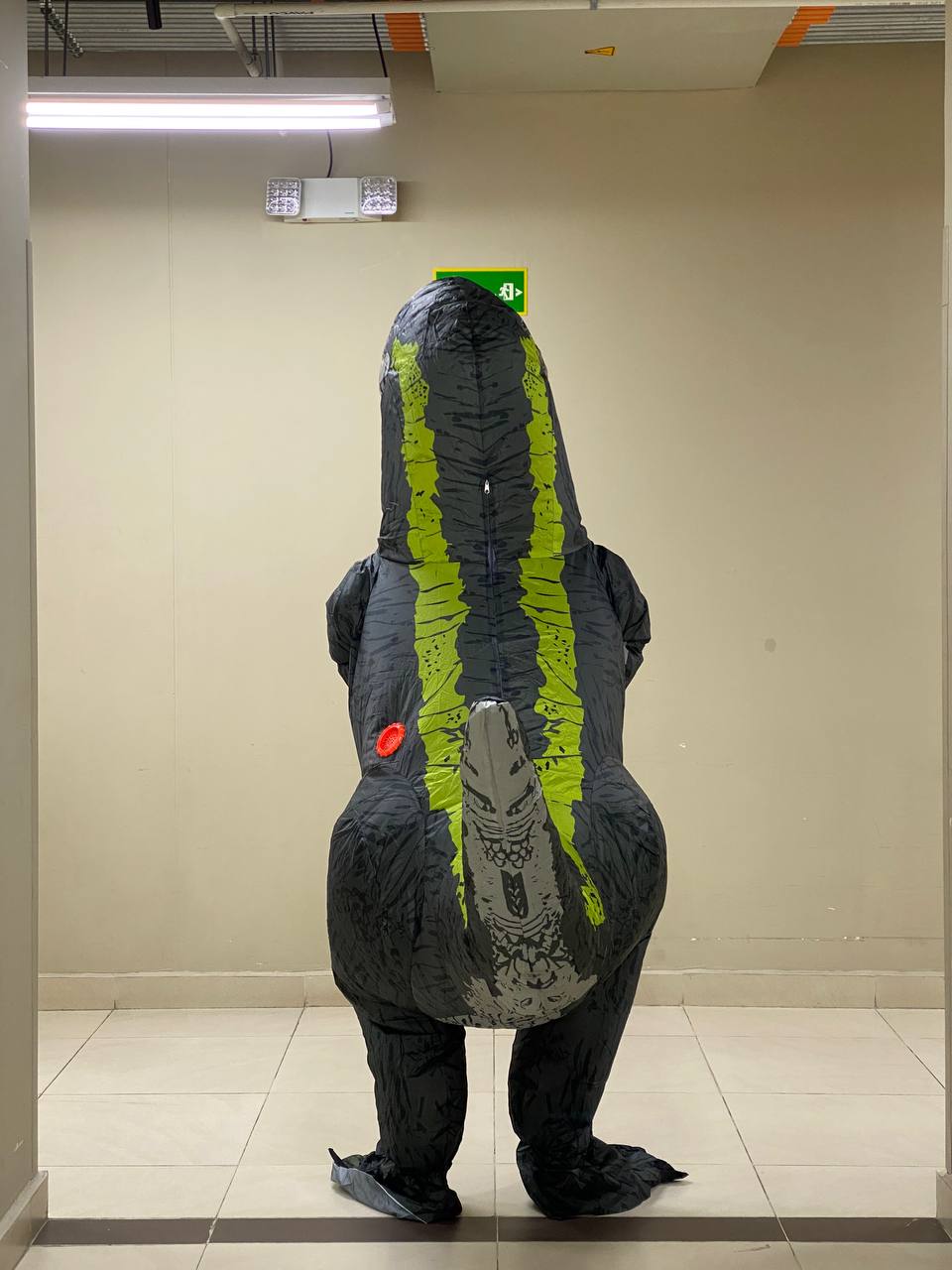 • Disfraz perfecto para ser la sensación de la fiesta, con el podrás montar un gran dinosaurio.