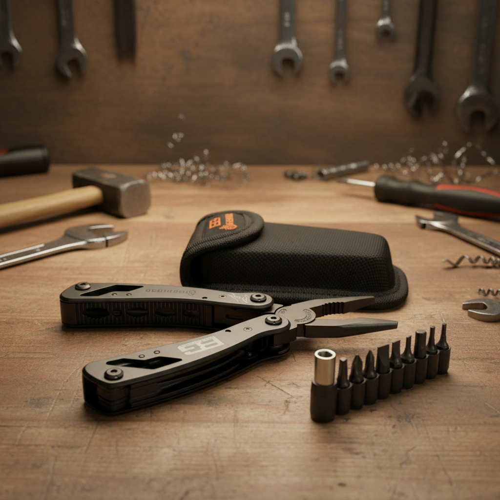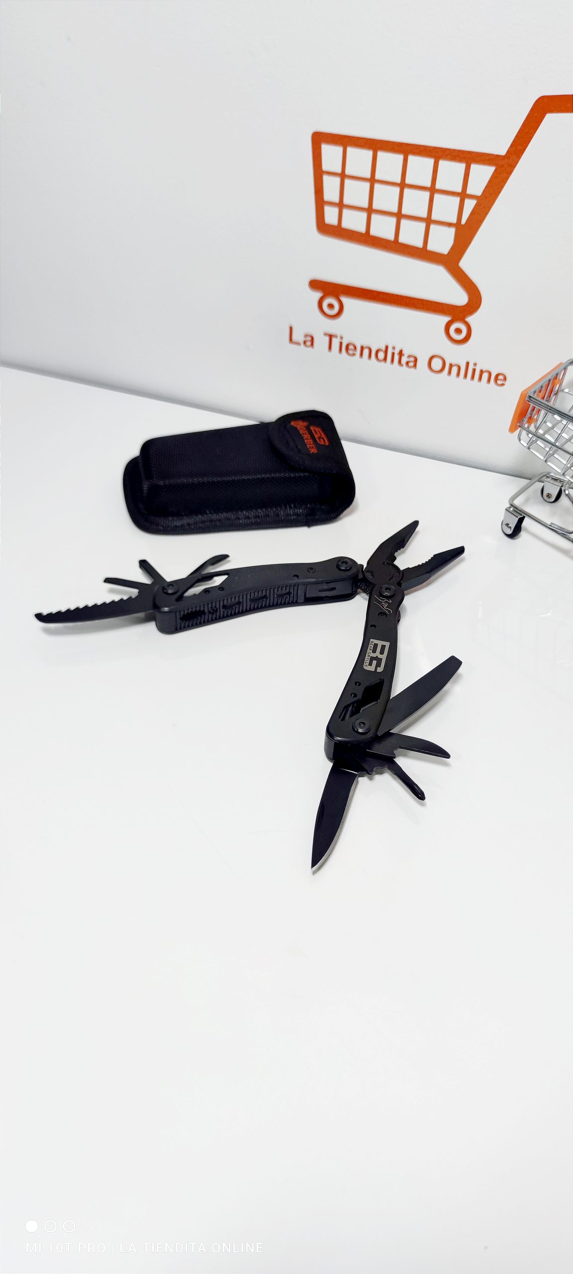 Material acero Inoxidable Color Negro Medidas: (abierto 16,5cm, cerrado 10cm) Peso 360g Contenido: Estuche de lona Alicate multiuso Puntas Destornilladores X 9 + 1 Adaptador