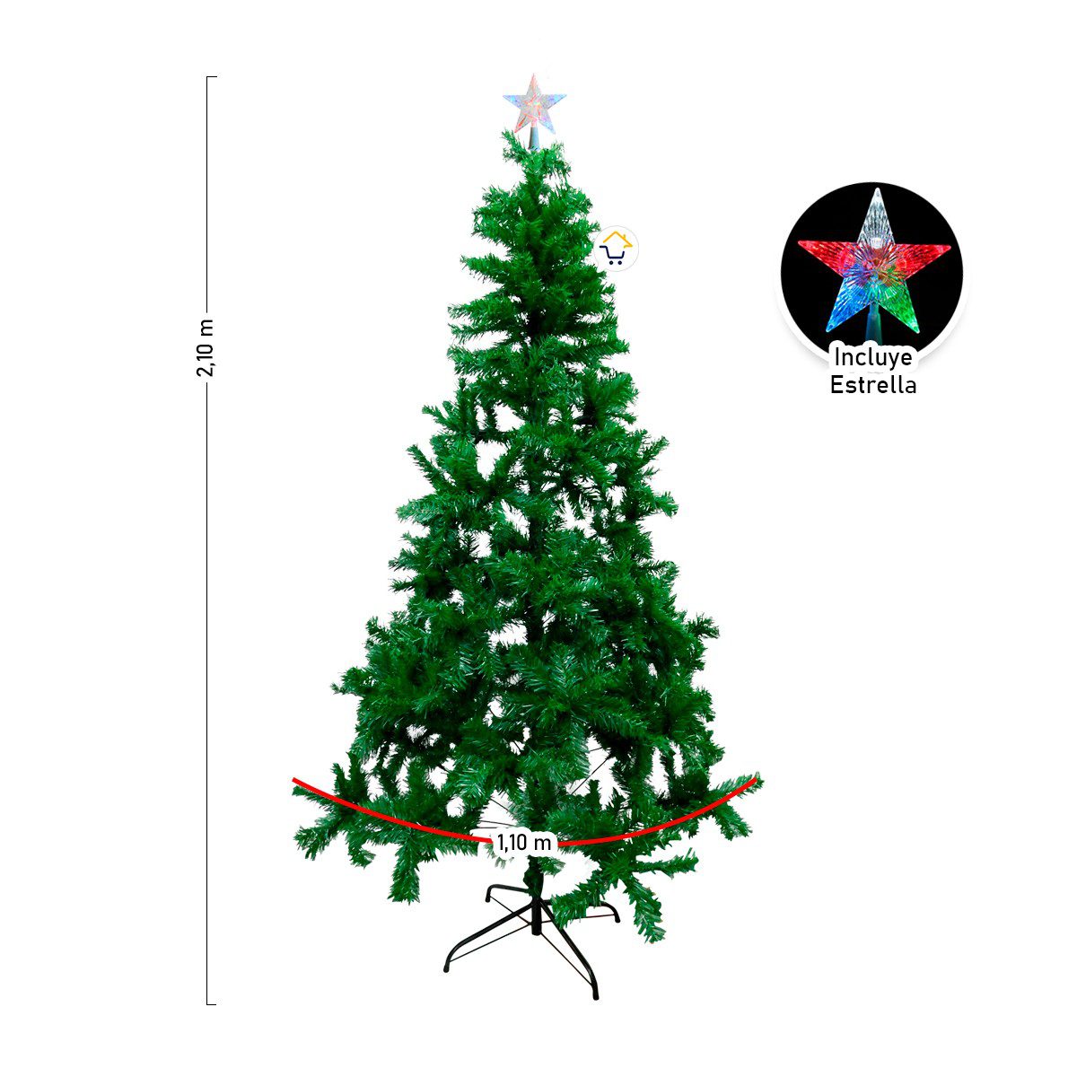 • Tamaño Aprox.: Árbol Navideño: 2.1 m / Diámetro aprox. 110 cm