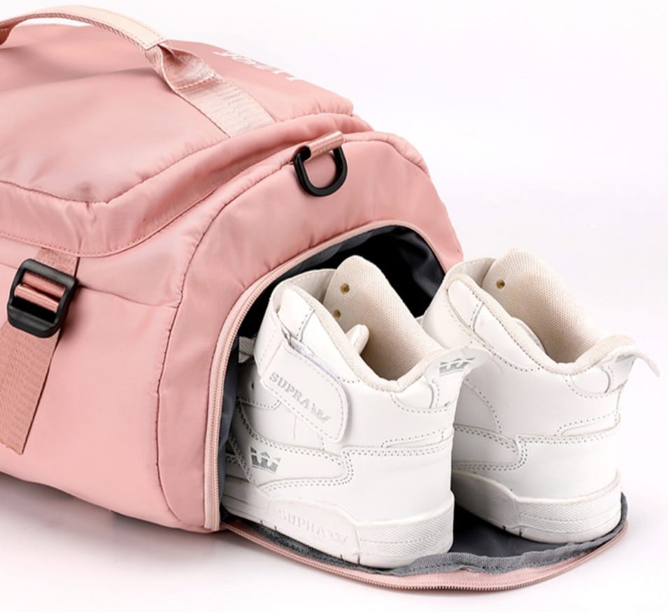 • Compartimento para zapatos, le permite guardar el calzado en bolsillos separados para evitar ensuciar los demás elementos dentro del bolso.