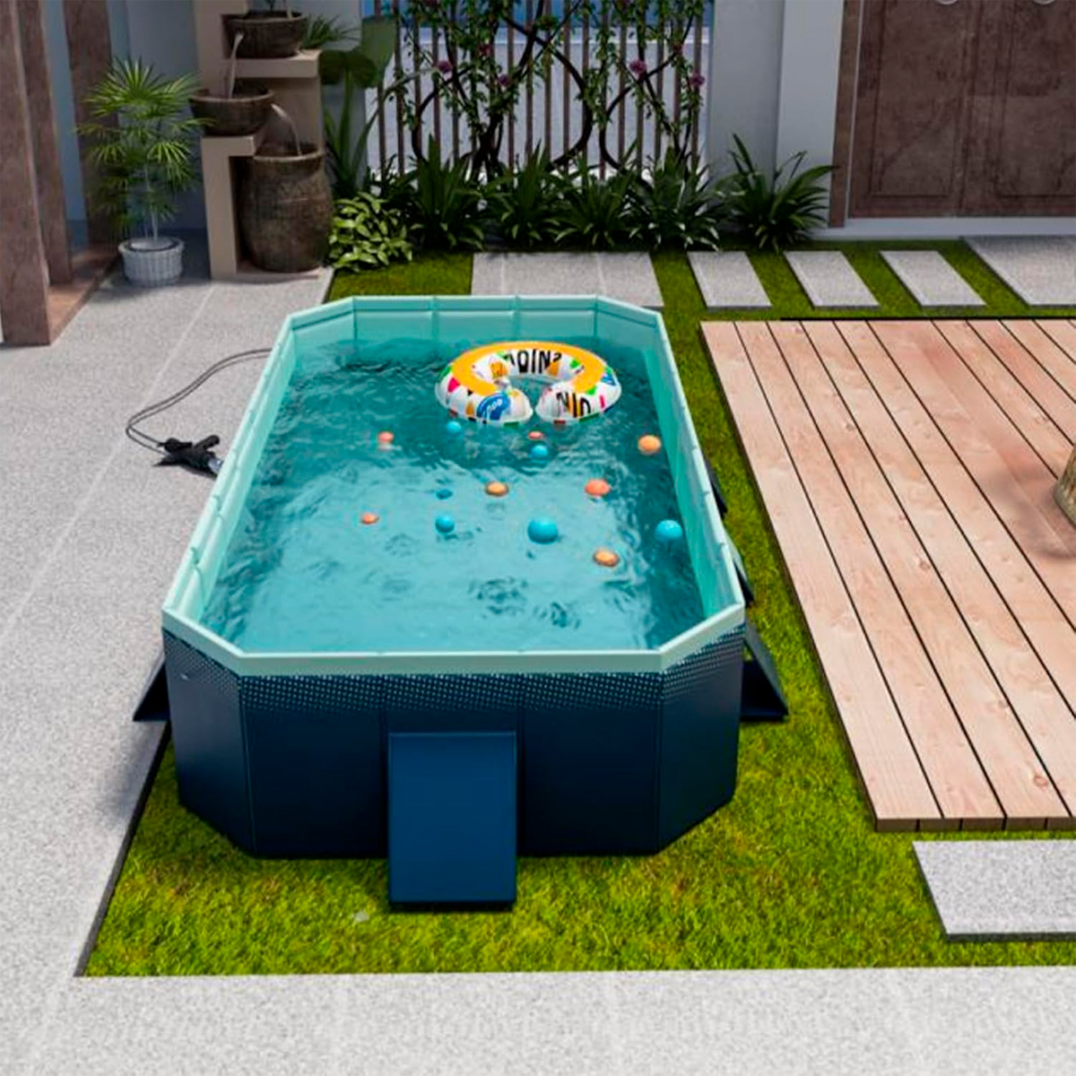 • Montaje a presión en 2 minutos: simplemente despliega y encaja en forma rectangular, listo para el agua en 60 segundos. No requiere bombas/herramientas.
