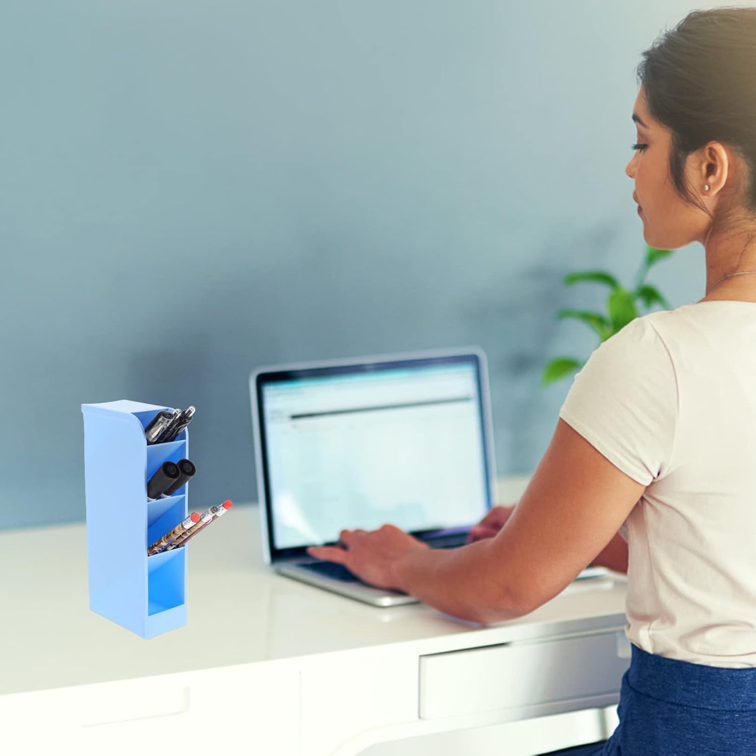 📏 Compacta y Espaciosa: ofrece una gran capacidad para almacenar tus herramientas de escritorio sin ocupar mucho espacio en tu escritorio.