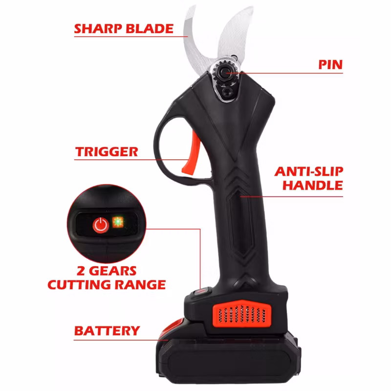 Presentamos Podadora Eléctrica Ideal para recortar y podar ramas de árboles y tallos no deseados en el jardín. Cuenta con un diseño inalámbrico que hace que sea cómodo de usar. Impulsado por un potente motor y alimentado por una batería de gran capacidad de 2000 mAh, hace que el recorte y la poda sin esfuerzo ahorra tiempo y libre de fatiga. Características: diseño inalámbrico — la poda está diseñada para ser inalámbrica y ligera, lo que permite flexibilidad y libertad de movimiento cuando se trabaja. Potente y eficiente. impulsado por un potente motor y alimentado por una batería de gran capacidad de 2000 mAh, hace que el recorte y la poda sea fácil y eficiente. Material de calidad: equipado con cuchilla de acero para herramientas al carbono para garantizar la nitidez y durabilidad y un mango robusto para proporcionar un agarre firme y cómodo. Portátil: viene con un resistente a los impactos. Estuche de transporte para facilitar el transporte y mantener sus herramientas y accesorios bien organizados. Amplia aplicación: se puede utilizar en todo tipo de jardines, parques, granjas, huertos, invernaderos adecuados para podar árboles, flores y otras plantas ligeras.