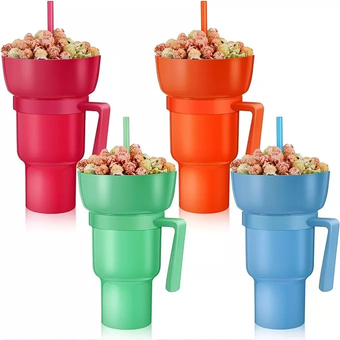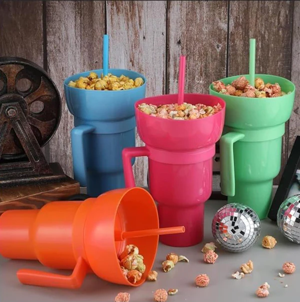 Versatilidad: Perfecto para cualquier situación, ya sea en casa, en el cine, en un partido o de viaje, este vaso es la solución todo en uno para tus necesidades de aperitivos y bebidas.